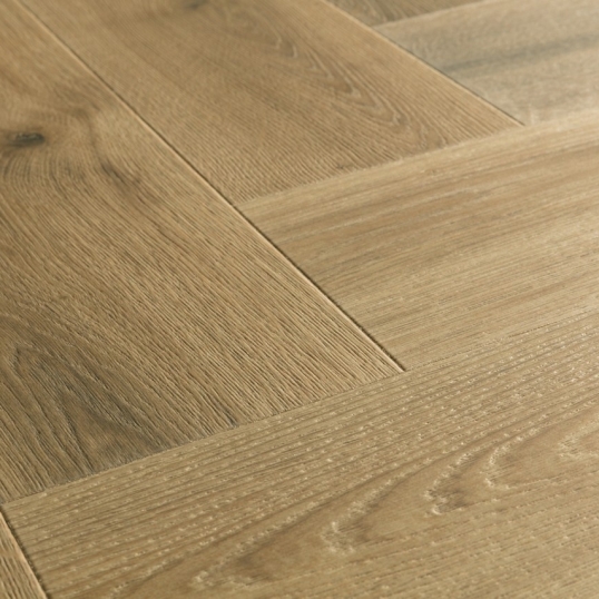 פרקט למינציה פישבון מסדרת Impressive בגוון אלון טבעי ומפוחם, המשלב אופי דרמטי עם אלגנטיות נורדית קלאסית.